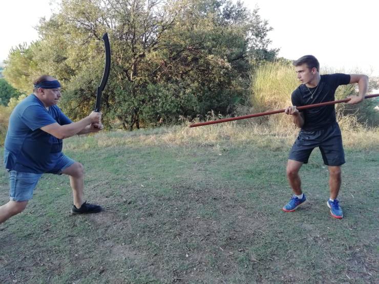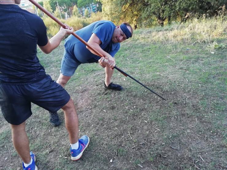 En el anterior artículo hemos visto como entrenar nuestro cuerpo para adaptarlo y adquirir destreza en el uso del bastón –y por tal, precursor directo de la lanza- así como la aplicación de unos ejercicios determinados, los cuales presentan un trabajo no solo desde la perspectiva física y de la multilateralidad, sino también desde la perspectiva del trabajo de los elementos condicionales –flexibilidad, fuerza, resistencia, velocidad- y la carga mental y psíquica que implica…. En este breve artículo expondremos una técnica determinada de bastón o lanza contra el ataque de una espada, preferiblemente una espada pesada de doble mano o afín, siendo la finalidad principal de esta el corte y no el estoque.