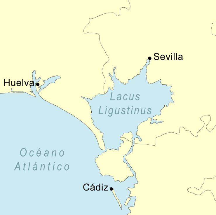 Así tenemos que la formación de un lacus de agua dulce en tiempos de Tartessos -s. X-VI AP o a. C.- era algo improbable, debido a que se trataba de una zona inundada por el mar, a pesar que en época de Argantonio podría darse las condiciones para una formación lacustre en la planicie sevillana. El “lacus” debió formarse debido a una gran inundación que se extendió por encima de la desembocadura del Guadalquivir en un periodo más tardío al periplo en que se basa Avieno en su Oda Marítima –la cual recoge muchos periplos -algunos de épocas muy anteriores al propio Avieno- pues en dicha época se habría producido un mayor proceso de colmatación.